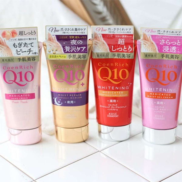 Kose CoenRich Q10 Whitening Medicated Cream là sản phẩm kem dưỡng da tay chứa Coezim Q10 & thảo dược thiên nhiên giúp dưỡng ẩm, xóa mờ vết chai, làm tăng sức sống cho làn da.