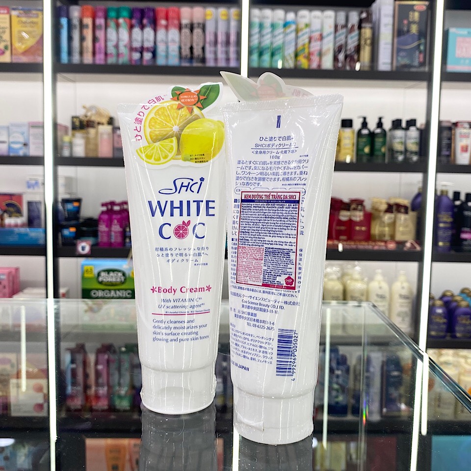 Kem Dưỡng Thể SHCI Làm Sáng Da của Nhật Bản với thành phần chính là chiết xuất nhau thai lợn và dẫn xuất Vitamin C mang đến cho bạn làn da mịn màng, tươi sáng và khỏe đẹp