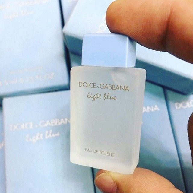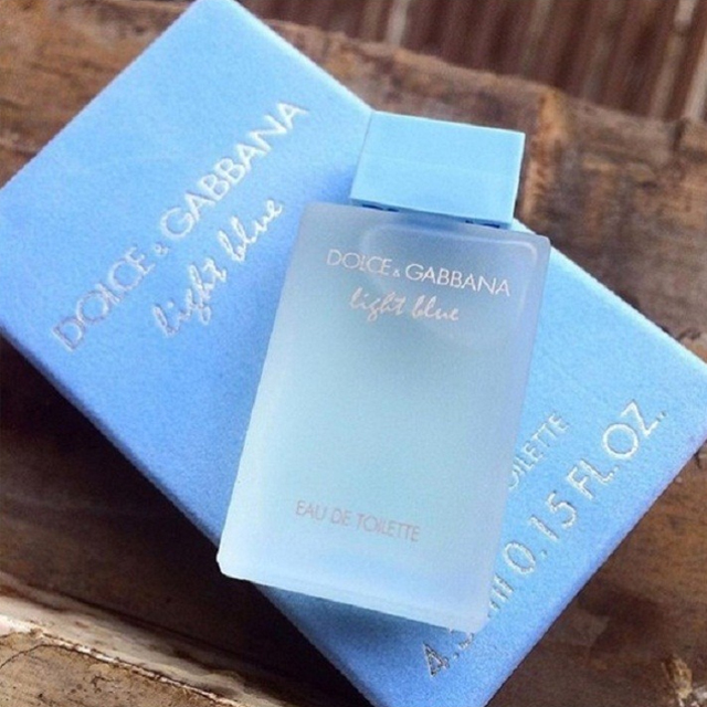 - Nước hoa D&G Light Blue. Hương đầu tươi mát, đầy thèm muốn của chanh Sicili, cây hoa chuông lá tròn và táo, hương giữa đầy nữ tính, chìm ngập trong mùi hoa nhài, tre và hồng trắng. Theo sau đó là hương cuối ngọt ngào của gỗ tuyết tùng, hổ phách và xạ hương.