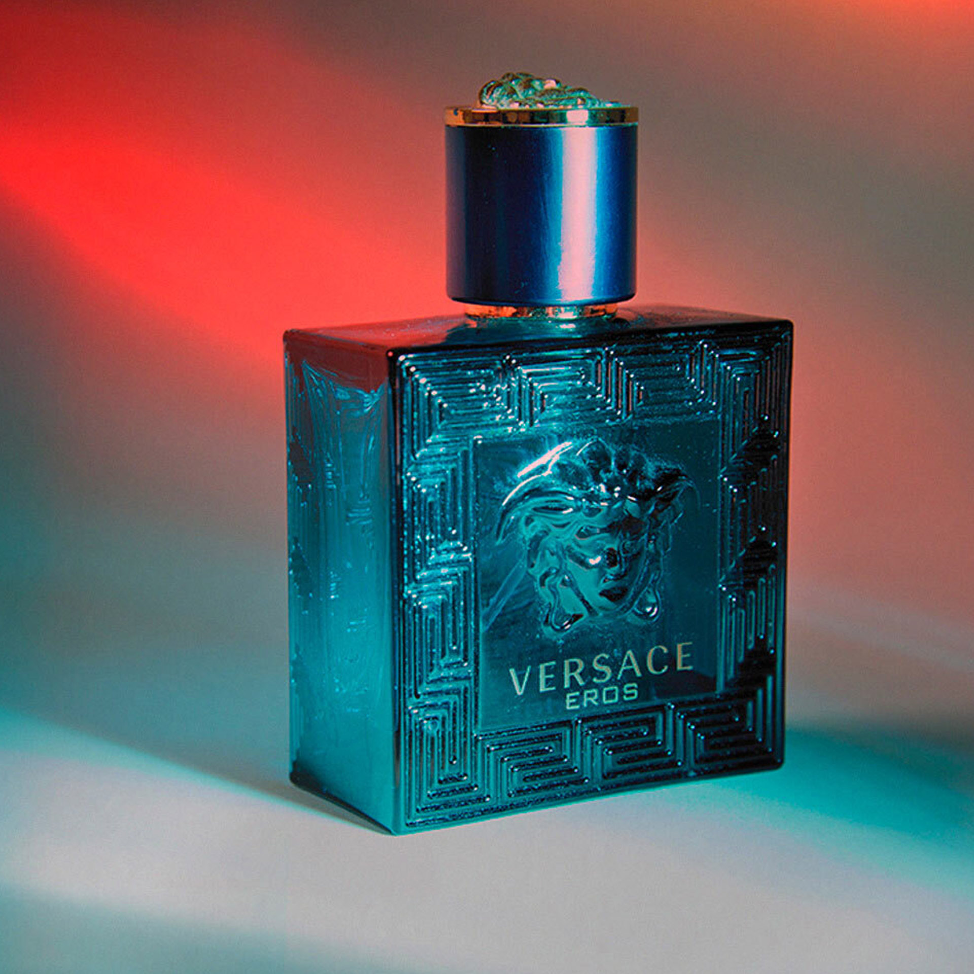 Versace đã tung ra một loại nước hoa mới dành cho nam giới mang tên là Eros, được lấy cảm hứng và kết nối sâu sắc với thần thoại Hy Lạp. Mục đích của dòng nước hoa này là khơi gợi và thể hiện sự mạnh mẽ và đam mê. Nước hoa được đặt theo tên của vị thần tình yêu và cũng là con của vị thần Aphrodite là Eros. Eros được sáng tạo bởi Aurelen Guichard của thương hiệu Givaudan.