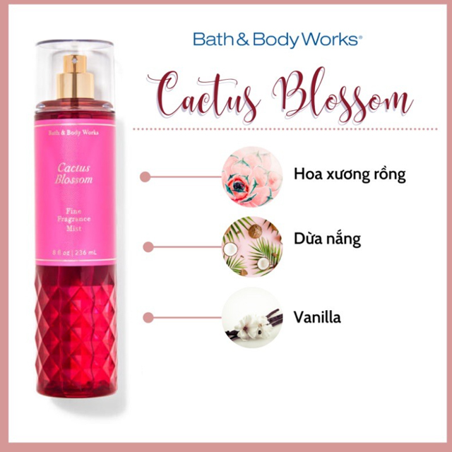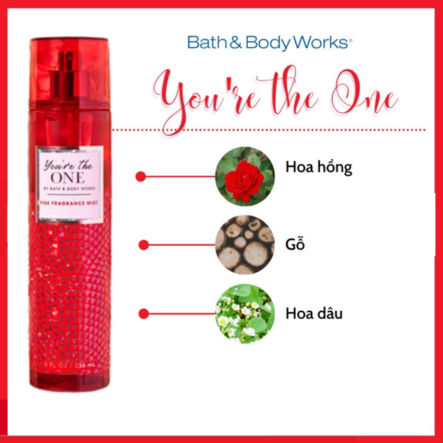 Xịt Thơm Toàn Thân Bath & Body Works (236ml) mang những mùi hương hoa cỏ thiên nhiên dễ chịu, hòa với hàng loạt mùi hương trái cây nhiệt đới tươi mát sẽ giúp các bạn gái giữ được hương cơ thể nồng nàn, hấp dẫn đến hơn 6 giờ. Bên cạnh đó, thành phần của nước xịt thơm toàn thân Bath & Body Works có chứa tinh chất lô hội Aloe Vera giúp dưỡng ẩm, làm mịn da. Đặc biệt không gây nhờn rít. Mang lại cảm giác thư giãn cho bạn gái suốt cả ngày.