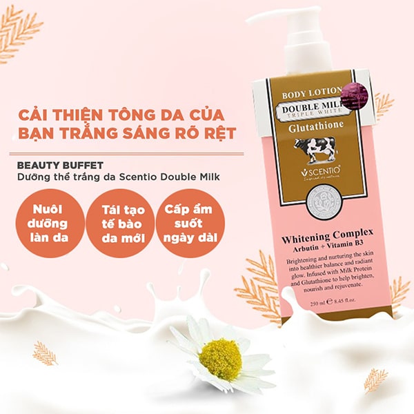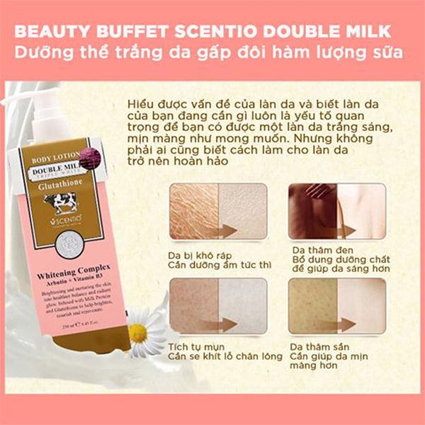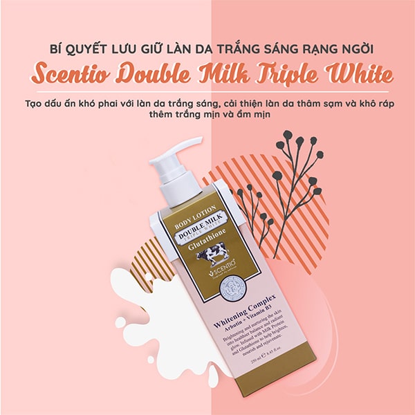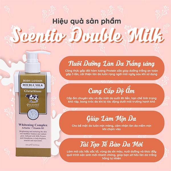- Sữa dưỡng thể Scentio Double Milk có khả năng làm trắng gấp 10 lần so với các dòng dưỡng thể thông thường