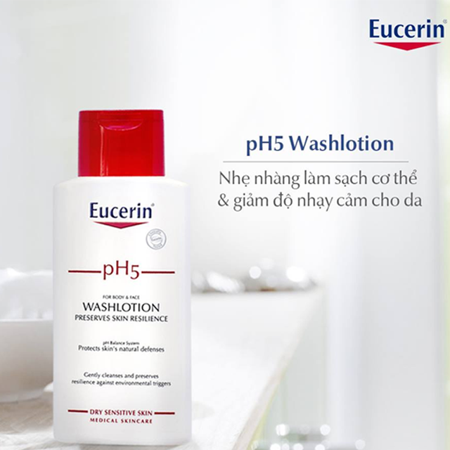 - Công thức pH5 Enzyme Protection có trong sữa tắm Eucerin pH5 Washlotion làm sạch nhẹ nhàng, nâng cao khả năng tự bảo vệ của làn da