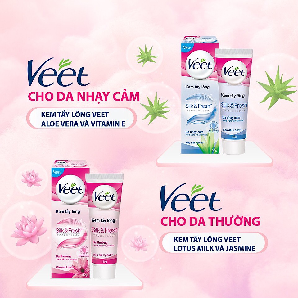 Sở hữu làn da sáng đẹp là điều mà bất kỳ bạn gái cũng mong muốn để có thể tự tin khi diện trang phục mùa hè. Đa số các nàng nào cũng đều gặp phải vấn đề khó nói, một trở ngại lớn khi diện trang phục ngắn mát, năng động đó chính là làm sao để tẩy lông hiệu quả. Thấu hiểu những nỗi trăn trở đó, hôm nay chúng tớ mang đến cho bạn dòng kem tẩy lông dành cho da nhạy cảm Veet Silk & Fresh, sản phẩm được sản xuất theo công nghệ tiên tiến, chứa tinh chất Nha đam và chiết xuất Vitamin E an toàn cho da nàng nhé.
