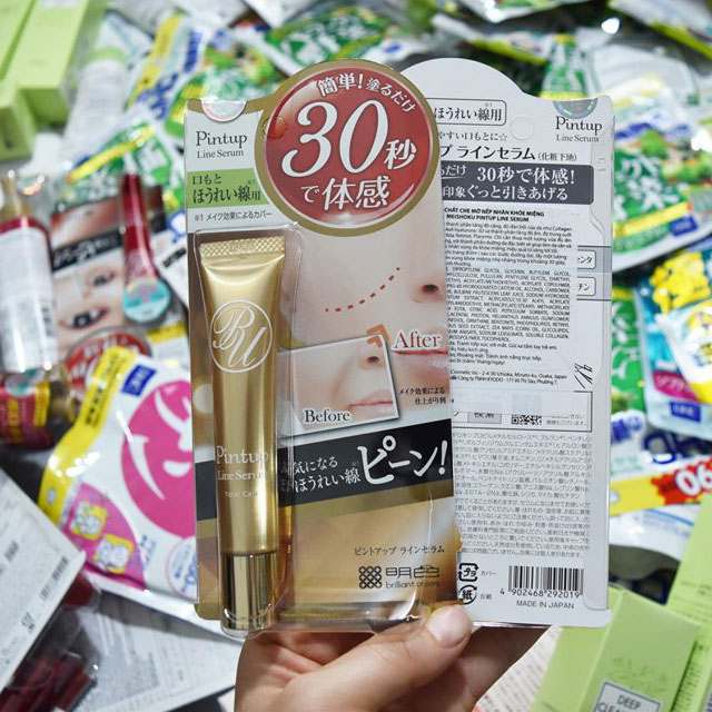 Nhà tớ xin giới thiệu đến các nàng em Meishoku Pint Up Line Serum, tinh chất chứa các thành phần dưỡng chất đặc biệt giúp hỗ trợ hiệu quả trong việc làm săn chắc và mờ nếp nhăn ở khóe miệng. Chỉ cần thoa một lượng vừa đủ lên vùng rãnh khóe miệng, serum sẽ giúp làm săn và mờ nếp nhăn hiệu quả, cho da trở nên căng sáng, mịn màng.