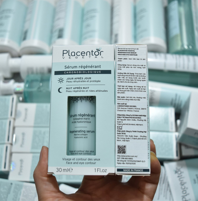 -Căng thẳng, mệt mỏi, môi trường ô nhiễm và lão hóa dẫn đến sự không đồng bộ đồng hồ sinh học ở da. Huyết thanh tái tạo Placentor Végétal Sérum Régénérant với cơ chế bảo vệ da (ban ngày) và sửa chữa (ban đêm) sẽ giúp cải thiện các vấn đề về da một cách hiệu quả, giảm thiểu tình trạng da xỉn màu, khô ráp, lão hóa,.. mang đến cho bạn làm da khỏe mạnh, tươi tắn, rạng rỡ hơn.