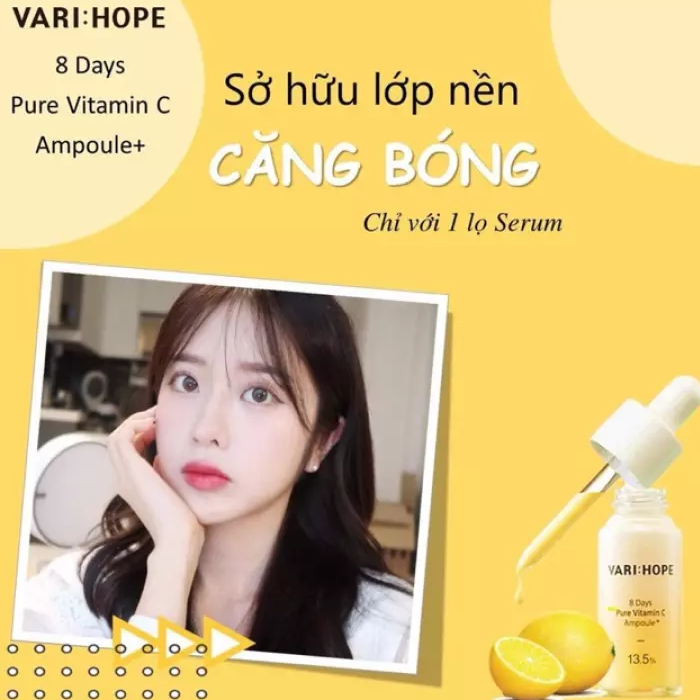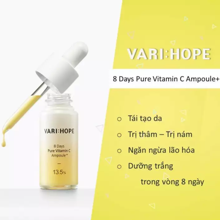Nồng độ Vitamin C: 13.5% Vitamin C không còn xa lạ trong đời sống cũng như trong các phương pháp làm đẹp. Sản phẩm này sẽ là chìa khóa để giúp dưỡng trắng da, giảm thâm nám, chống lão hóa và dưỡng ẩm da, giúp da săn chắc, khỏe mạnh. Trong vô vàn loại serum trên thị trường hiện nay, serum VARIHOPE Vitamin C 13,5% lại nổi trội hơn cả vì những đặc tính, công dụng sau hãy cùng ansan tìm hiểu nhé