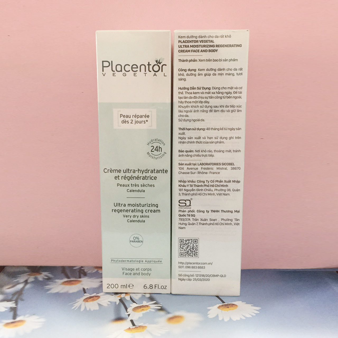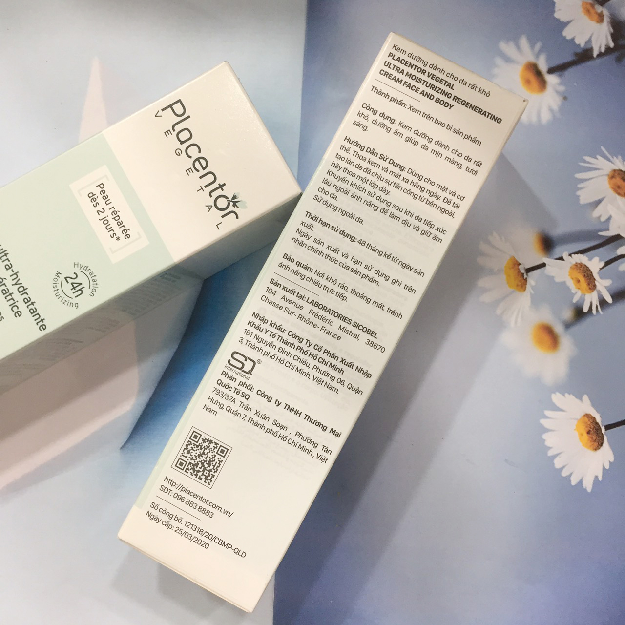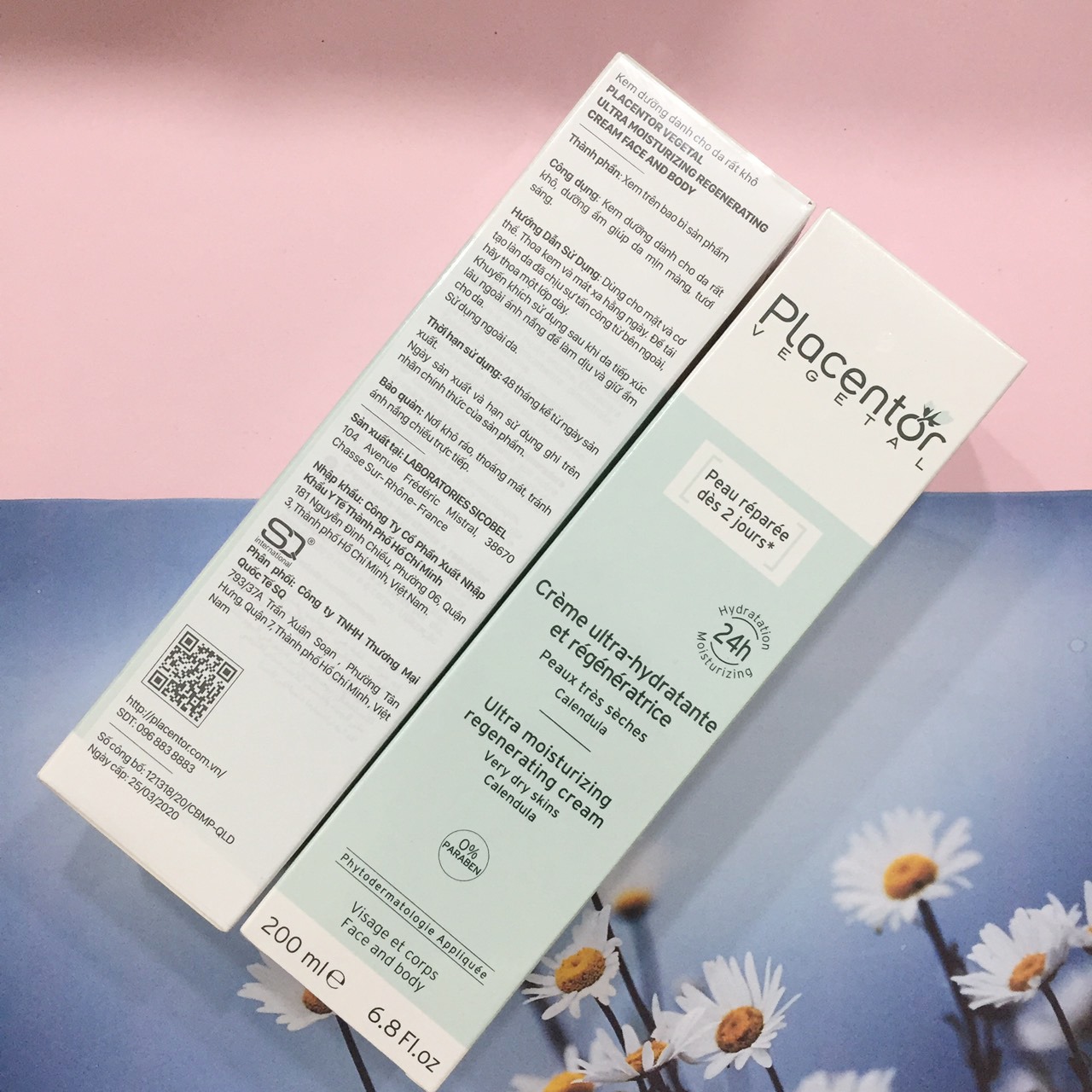 Kem dưỡng dành cho da khô Placentor Vegetal Ultra Moisturizing Regenerating Cream Face And Body 200ml