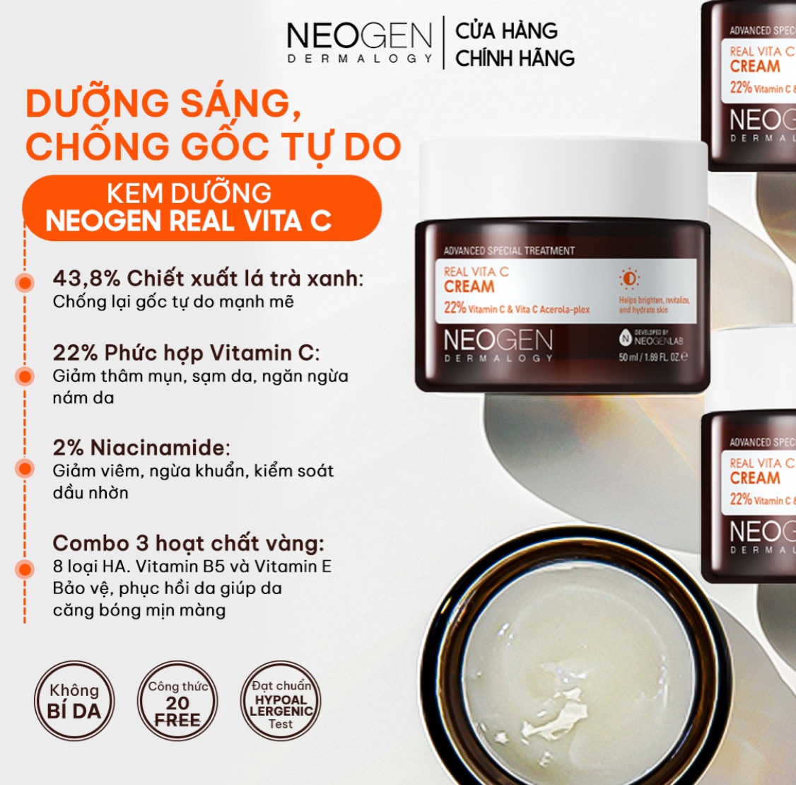 Kem dưỡng Vitamin C dưỡng sáng giảm viêm Neogen Real Vita C cream 50ml