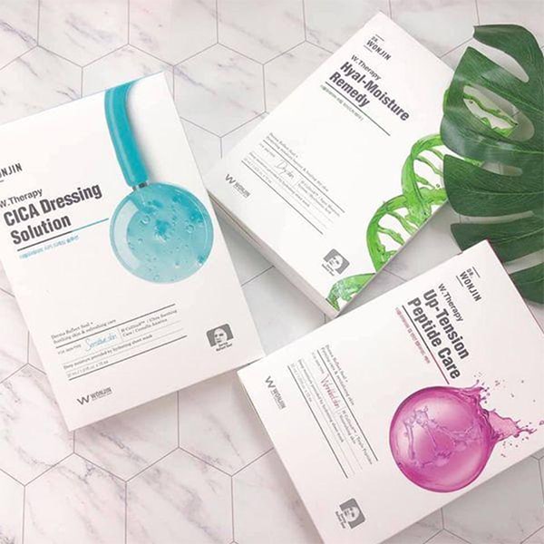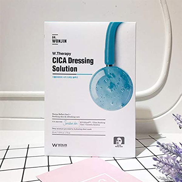 – Dr. Wonjin W. Therapy CICA Dressing Solution (màu xanh dương) – mặt nạ cho da sau mụn, da sau lăn kim, da nhạy cảm cần phục hồi. Mặt nạ này là mặt nạ được dùng nhiều
