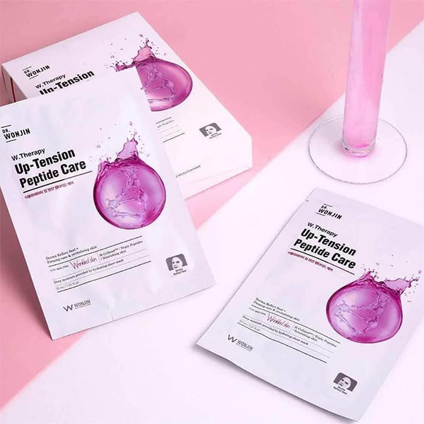 – Dr. Wonjin W. Therapy Up-tension Peptide Care (màu hồng) – mặt nạ hỗ trợ nâng cơ và làm trắng da, cho da ko còn nhăn chùng, chảy xệ)