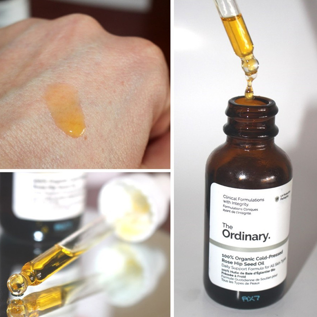Tinh dầu cấp ẩm The Ordinary 100% Organic Cold Pressed Rose Hip Seed Oil 30ml, có màu vàng, kết cấu sánh lỏng, trong vắt và có mùi hương khá nhẹ, rất dễ chịu.