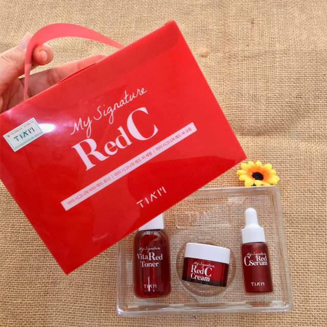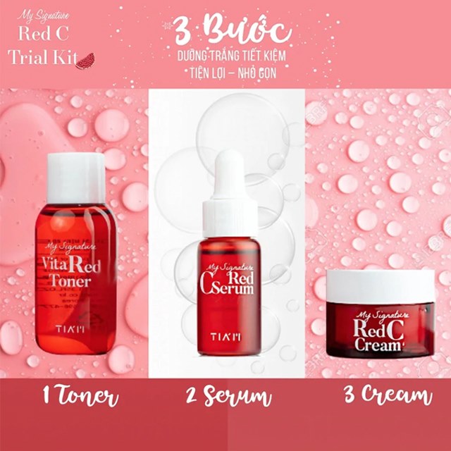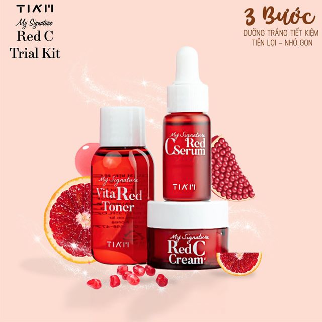 Bộ Kit 3 món dưỡng trắng da làm mờ thâm TIAM My Signature Red C giúp phục hồi và cân bằng độ ẩm cho da, giảm thâm, nám, tàn nhang, hỗ trợ trong việc làm trắng sáng da, làm đồng đều màu da, se khít lỗ chân lông đồng thời hạn chế mụn đầu đen hiệu quả.