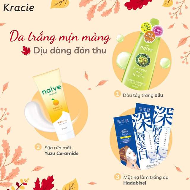 -Hãy nhanh chóng rũ bỏ làn da khô, xỉn màu thiếu sức sống và chào đón làn da láng mịn với Combo SÁNG MỊN của Kracie nàng nhé! Chỉ với 3 bước chăm sóc da cơ bản dễ dàng sở hữu làn da sáng mịn màng:
