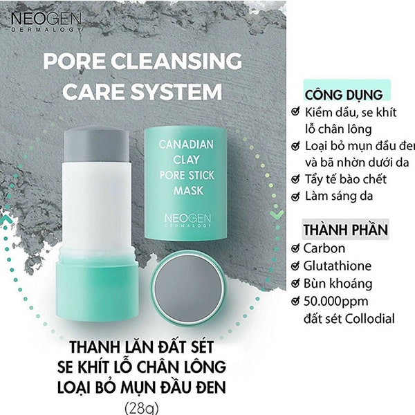 Thanh lăn đất sét giảm mụn đầu đen Neogen Canadian Clay Pore Stick Mask