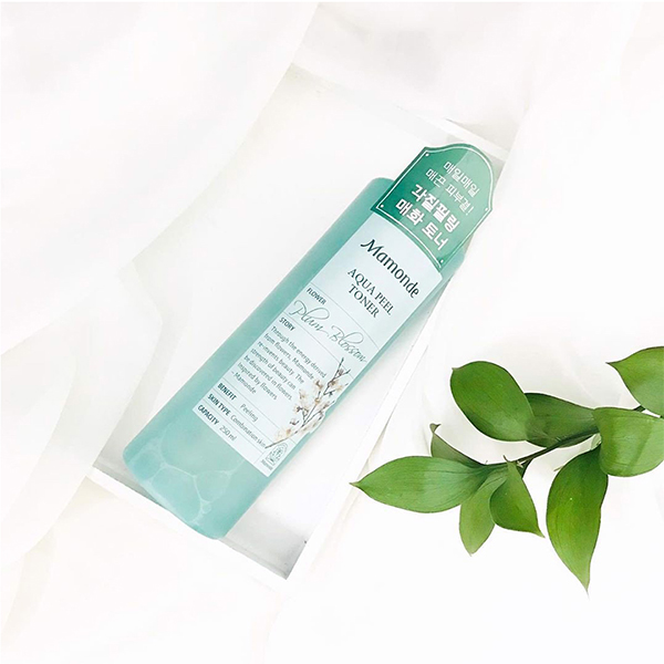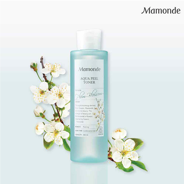 Về thành phần, Mamonde Aqua Peel Toner Plum Blossom có chứa chiết xuất hoa mận - Plum Blossom và thành phần AHA tự nhiên, giúp dưỡng ẩm sâu, tẩy nhẹ nhàng các tế bào chết trên da, ngăn ngừa mụn ẩn, hạn chế tích tụ bã nhờn và chống lão hóa.