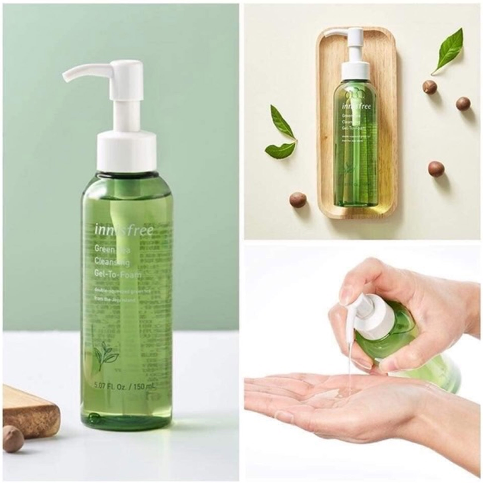 Vì sản phẩm chủ yếu là chiết xuất từ trà xanh, mà công dụng hiệu quả của trà xanh chắc mọi người cũng đã biết, nên sản phẩm Innisfree Green Tea Cleansing Gel-To-Foam sẽ là lựa chọn hoàn hảo của các bạn. Bật mí cho các nàng , sản phẩm này phù hợp với mọi loại da, nhất là da dầu và da mụn