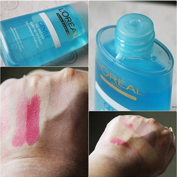 - lắc đều cho vào bông tây trang và lau nhẹ nhàng trên vùng da mắt và môi