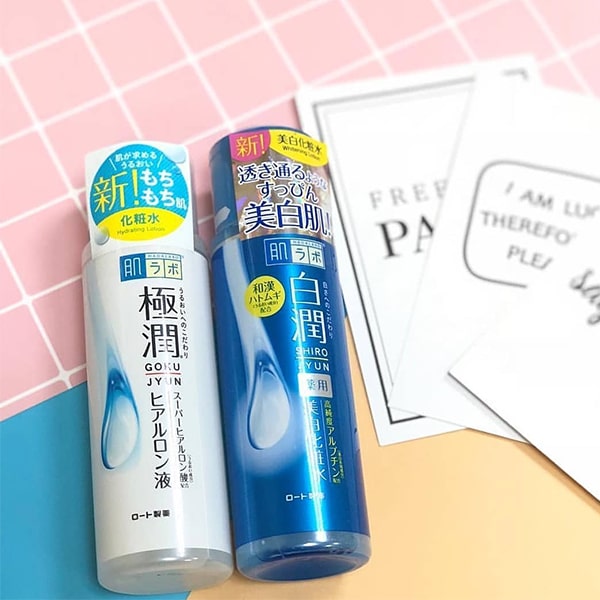 - Lation Hada Labo giúp giữ ẩm cho da tuyệt vời: nhỏ từ 2-3 giọt lotion ra tay, vỗ lên mặt sau đó tận hưởng làn da mềm mại, mịn màng từ 4-6 tiếng sau đó.