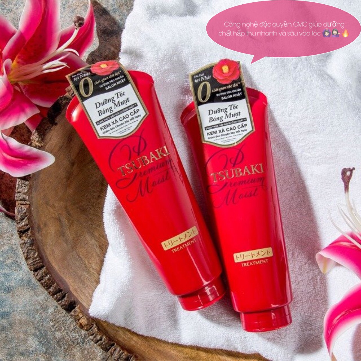 1. Kem xả dưỡng tóc bóng mượt TSUBAKI Premium Moist Treatment 180g
