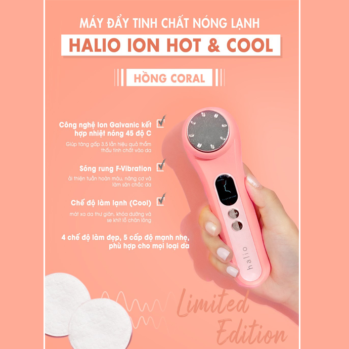Máy Đẩy Tinh Chất Dưỡng Trắng Nóng Lạnh Halio Ion Hot & Cool Beauty Device-Màu Coral