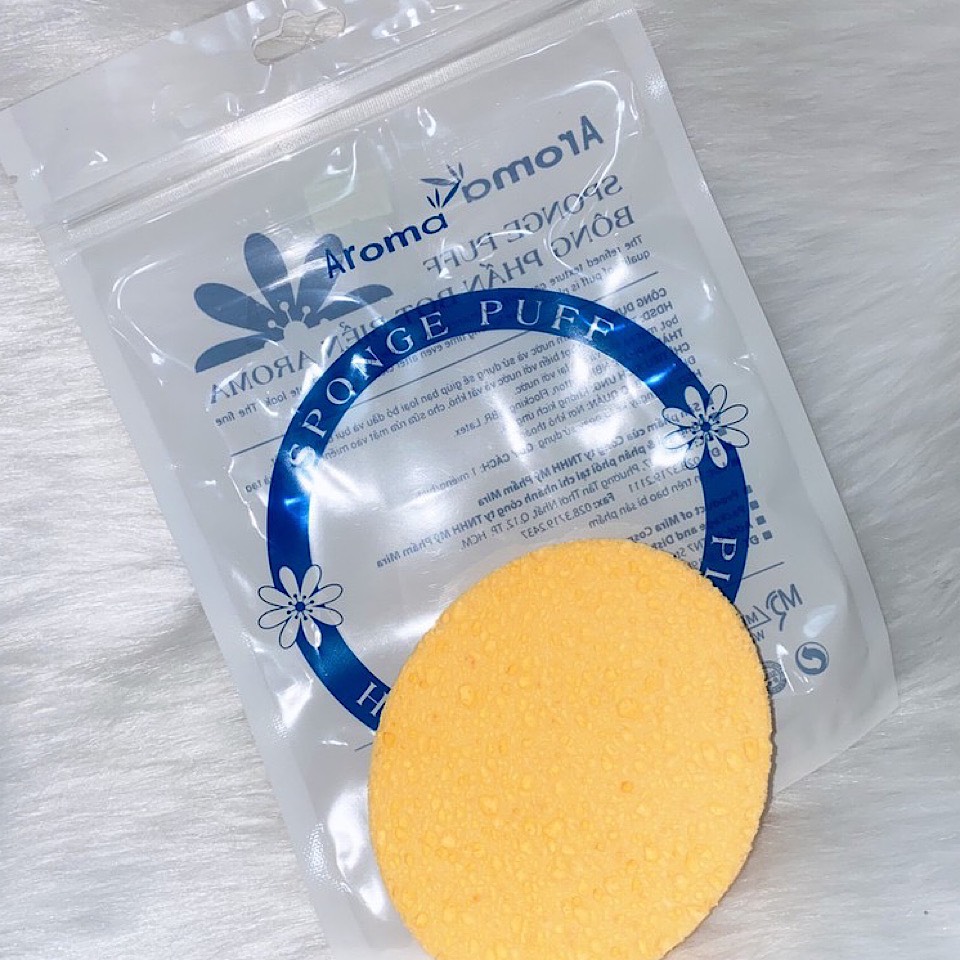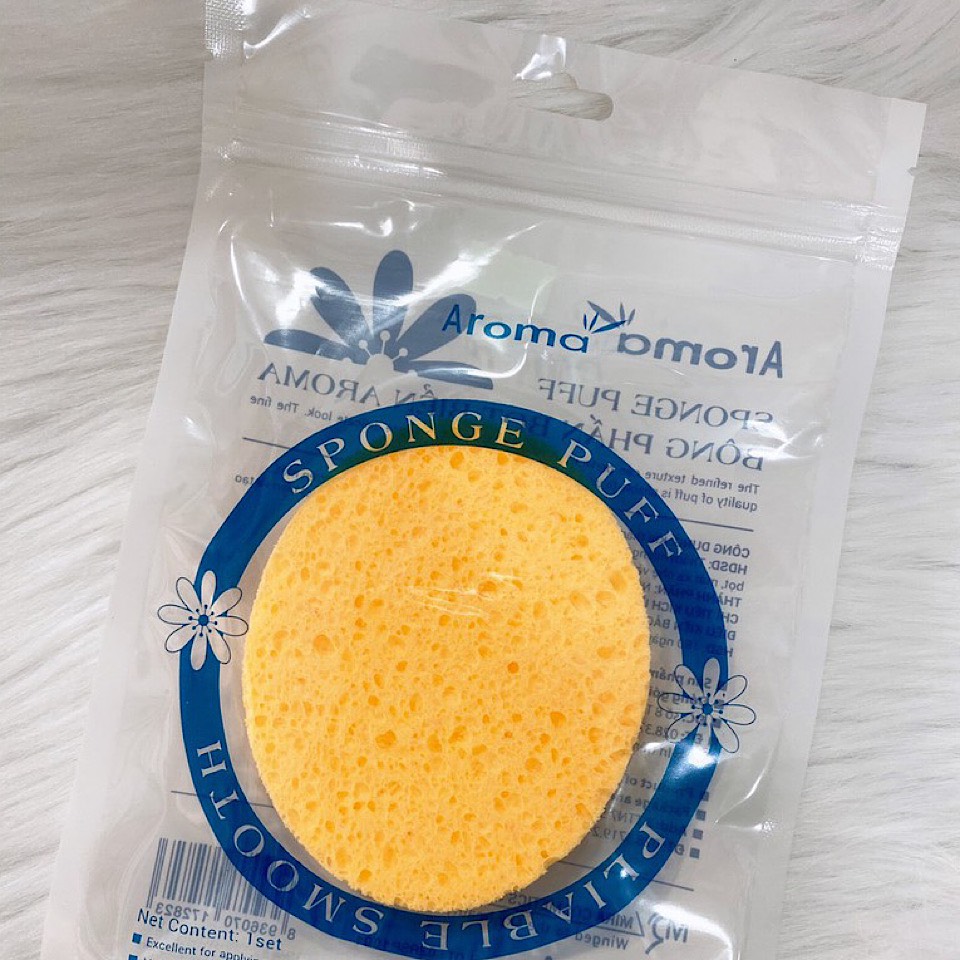 - Hướng dẫn Bông phấn bọt biển massage mặt AROMA ,Thấm miếng bọt biển với nước và vắt khô, lấy sữa rửa mặt lên bọt biển và tạo bọt, mát xa nhẹ và rửa lại với nước.