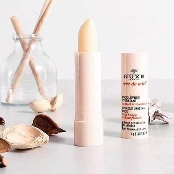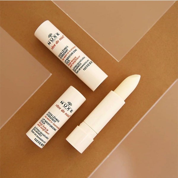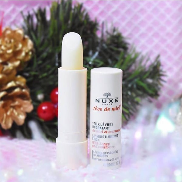 Son dưỡng Nuxe Reve De Miel Lip Moisturizing Stick chứa thành phần chính là sáp ong cùng dầu dưỡng thiên nhiên giúp dưỡng ẩm sâu như thể đôi môi đang được "ủ nước", ngăn ngừa tình trạng khô nứt, bong tróc.