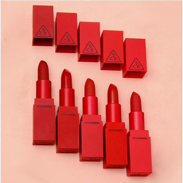 Là BST son thỏi vừa mới ra mắt của thương hiệu mỹ phẩm nổi tiếng 3CE. Không chỉ sở hữu lượng fan đông đảo tại Hàn, em son này còn được nhiều chị em trên khắp thế giới chào đón rất nồng nhiệt. Thay vì tập trung vào màu nude hoặc hồng như trước, BST 3CE Red Recipe có bảng màu gồm 5 tông đỏ khá sôi động – quyến rũ nhưng không kém cá tính.