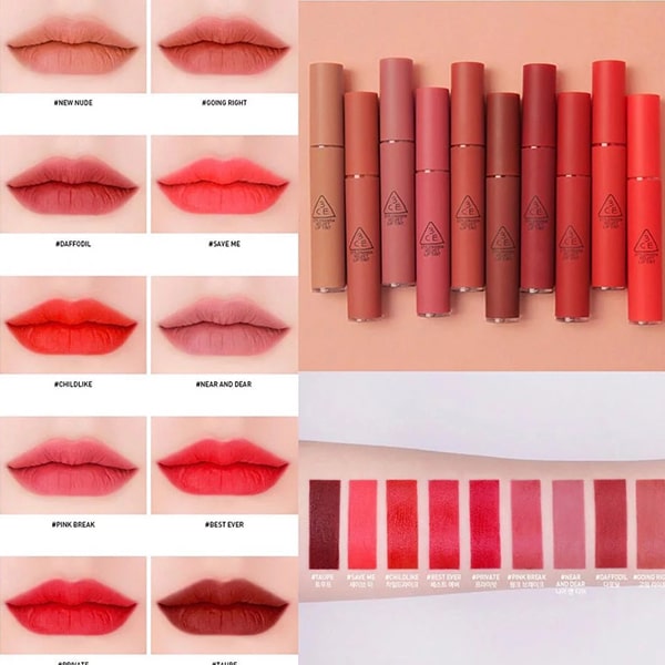 - Dù sở hữu chất son kem lì nhưng dòng son 3CE Velvet Lip Tint lại sở hữu chất son khá mỏng nhẹ của son tint, không hề đặc như những dòng son kem lì khác, do đó khi dùng không gây cảm giác nặng môi khi dùng.