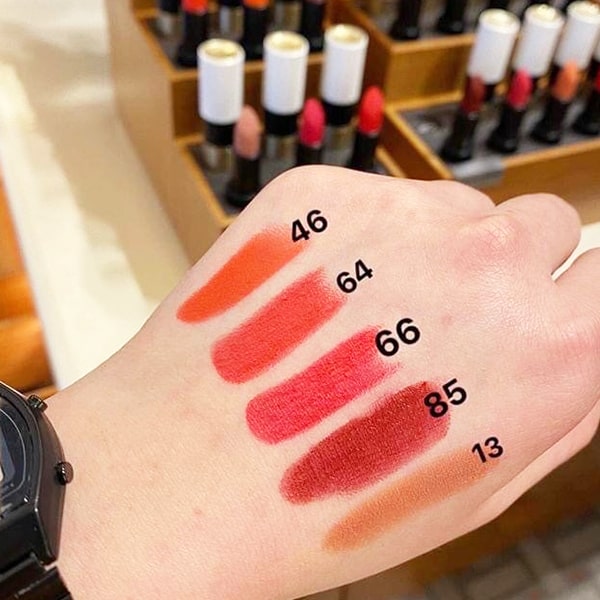 Chất son lì mịn mượt, lên màu rất chuẩn và cực kì mềm môi, bám giữ màu rất lâu.