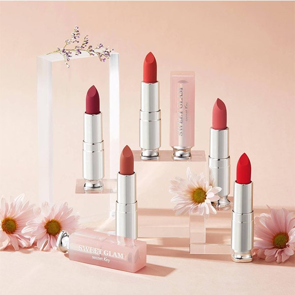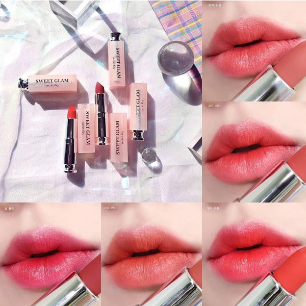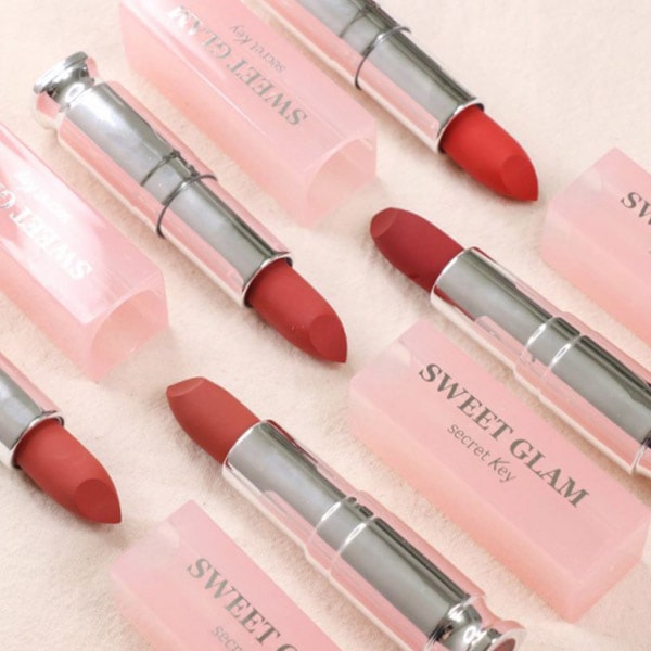 - Sweet Glam The Fit Lipstick có thiết kế son khá dễ thương với kiểu nữ tính, bánh bèo nhờ tông hồng chủ đạo ý. Đây cũng là thiết kế son khá quen thuộc của Secret Key. Nếu ai thấy na ná dòng son dưỡng thì đúng rồi đó nhé