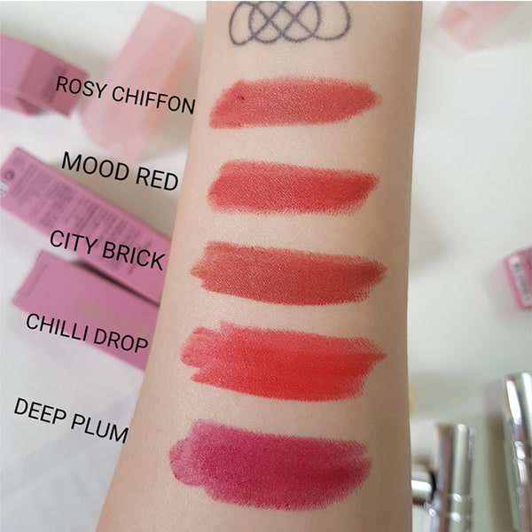 - DEEP PLUM: Tông đỏ đô sexy quyến rũ. Màu này tùy môi, có môi sẽ ra ánh hồng nhiều hơn. mình thấy màu này như màu cánh hoa hồng sậm ý