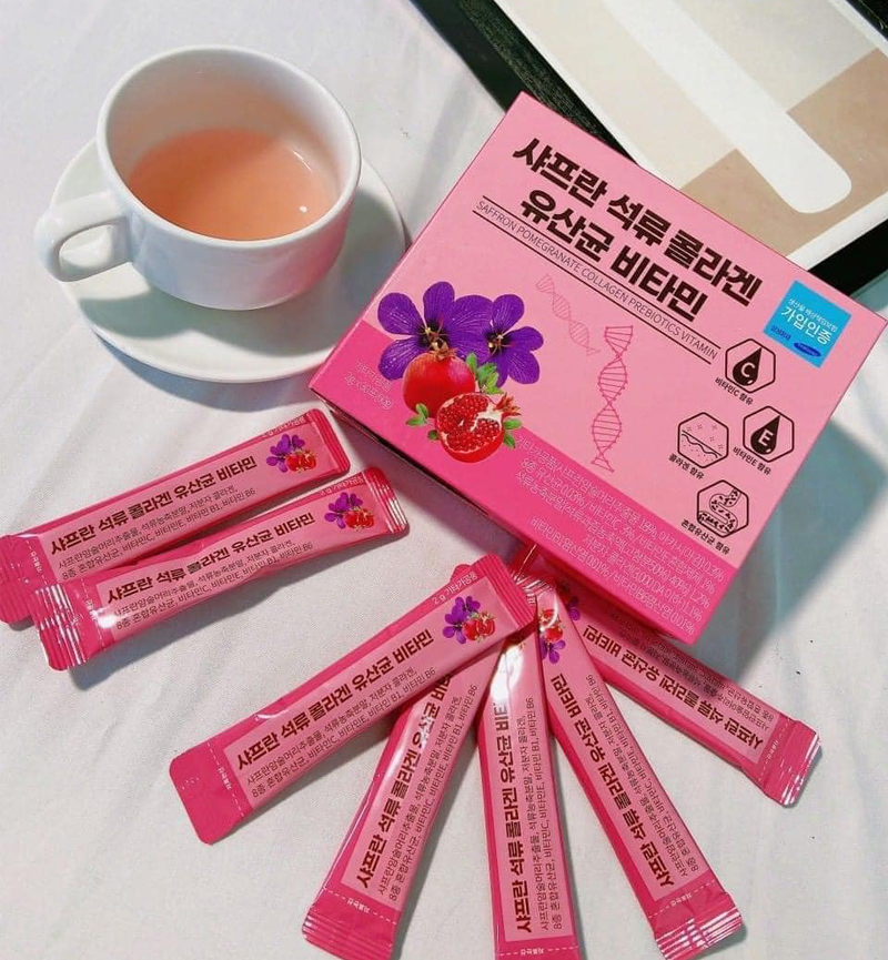 Bột Collagen Lựu Đỏ Nhụy Hoa Nghệ Tây Saffron Bio Cell Hàn Quốc