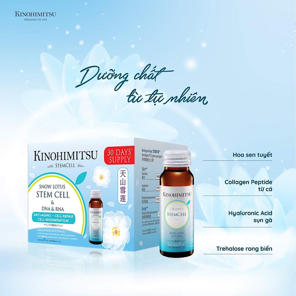 Kinohimitsu StemCell Drink là thức uống chống lão hóa tiên tiến nhất giúp bạn trông trẻ hơn và luôn cảm thấy cơ thể mình tuyệt vời!