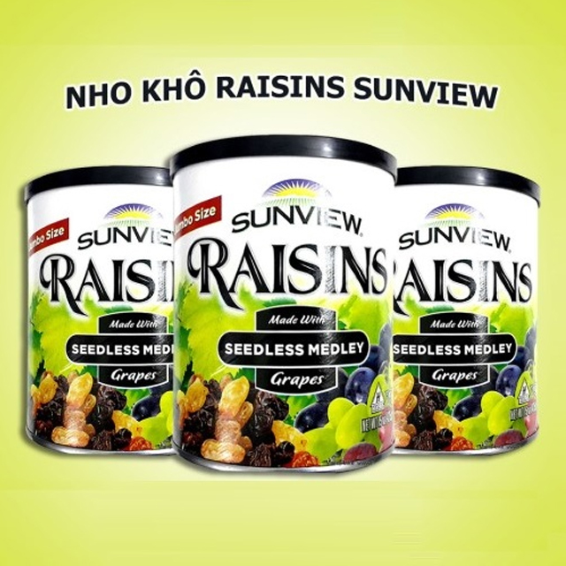 - Nho khô Sunview cung cấp vitamin, và các dưỡng chất giúp cơ thể khỏe mạnh, cung cấp năng lượng cho hoạt động của cơ thể.