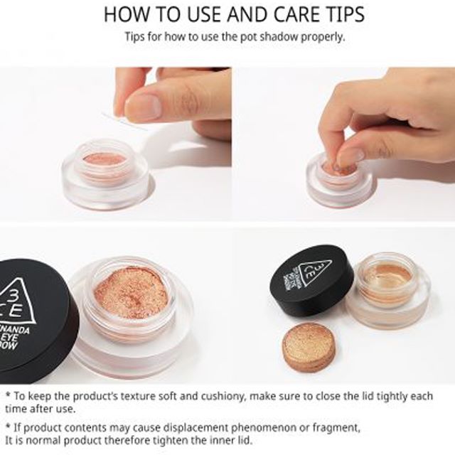 - Là phấn mắt nhũ dạng sáp của thương hiệu nổi tiếng Style Nanda_3CE đựng trong hũ thủy tinh nhỏ xinh, bao bì đơn giản tinh tế. Chất sáp nhũ mềm mịn, bám chắc mang lại hiệu quả trang điểm mắt cực kì cao, bởi các màu sắc rất đáng yêu.
