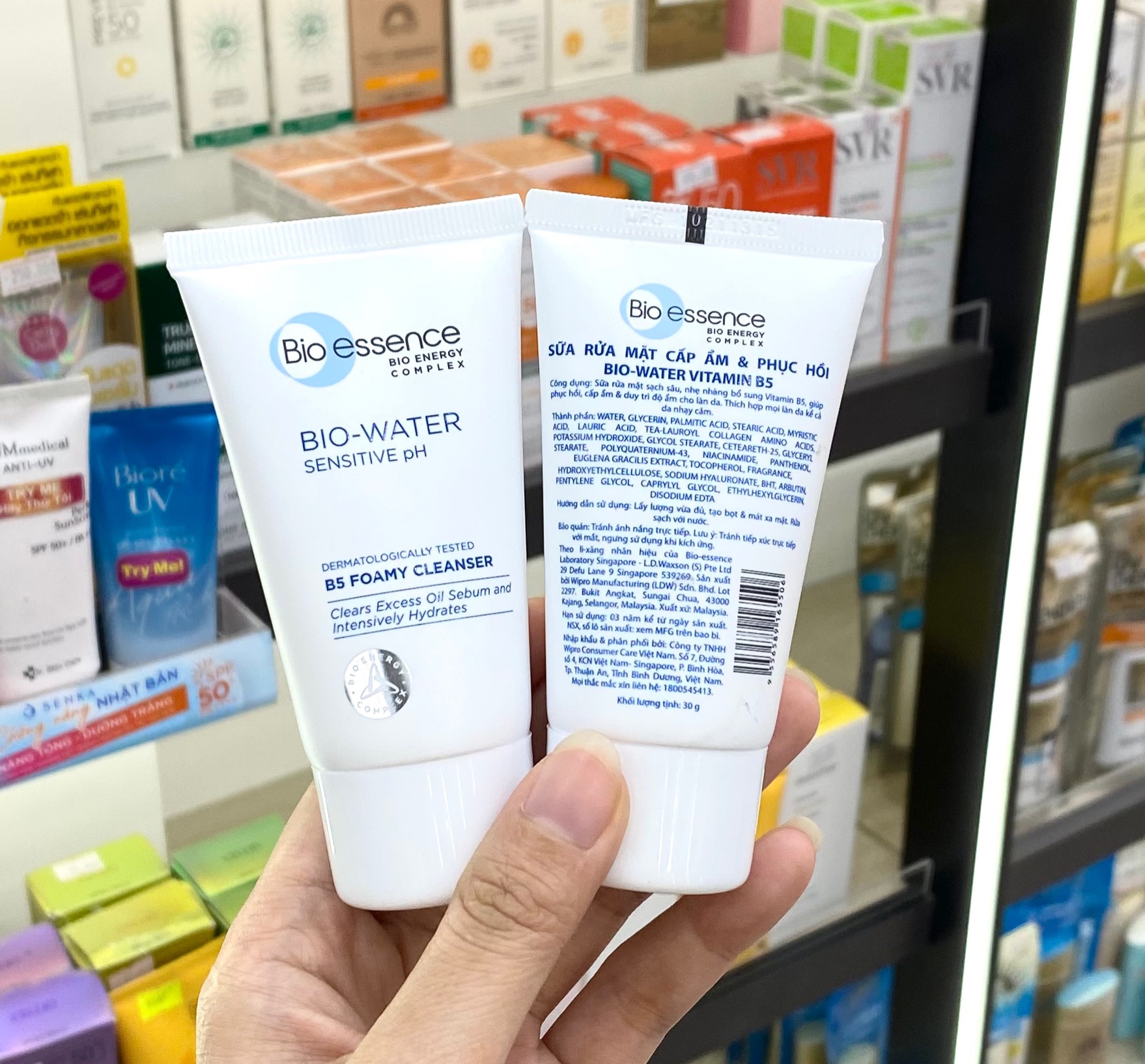 Sữa Rửa Mặt Tạo Bọt Cấp Ẩm Và Phục Hồi Bio-essence Bio-Water Sensitive pH B5 Foamy Cleanser Là sữa rửa mặt thuộc thương hiệu Bio-essence. Sử dụng công thức độc quyền Bio Energy Complex™ cùng thành phần khác như Hyaluronic Acid và chiết xuất lô hội... giúp hạ nhiệt độ trên da, nhẹ nhàng làm sạch bã nhờn dư thừa và cung cấp độ ẩm cho làn da ngậm nước. Phù hợp với mọi loại da kể cả da nhạy cảm