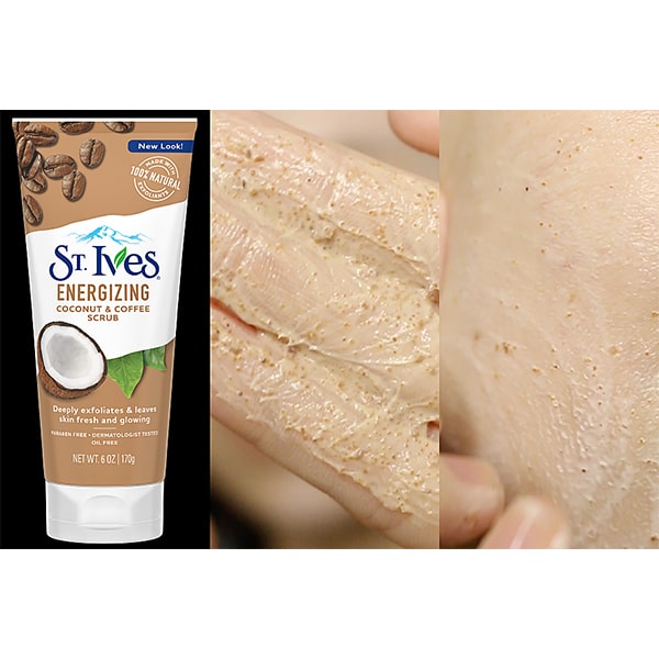 - Với công nghệ tẩy tế bào chết bằng hạt (Scrub), sản phẩm St Ives tinh chất dừa và cà phê sẽ nhẹ nhàng lấy đi tế bào chết một cách nhẹ nhàng, bụi bẩn, lớp dầu thừa,…mà không làm tổn thương da.