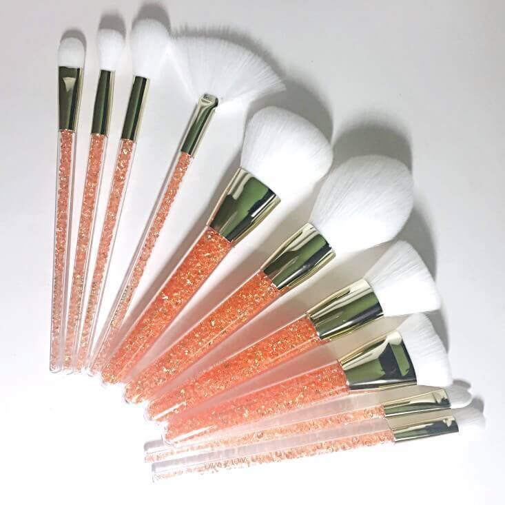 - Bộ gồm 10 cây cọ cho mặt và mắt có thể dùng được với phấn, kem hoặc chất lỏng.