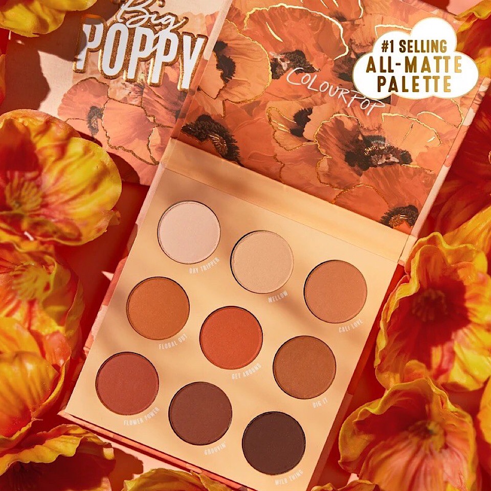 - ColourPop Big Poppy Eyeshadow Palette là bảng màu có 9 màu , mỗi màu mang cho mình một chủ đề riêng. Được ra mắt vào tháng 8 bảng màu là một phiên bản tuyệt vời cho bộ sưu tập của ColourPop. ColourPop Big Poppy Eyeshadow Palette là mang tất cả các sắc thái khác nhau của màu nâu. Màu trông rất sắc nét, mượt mà mang chút nhẹ nhàng.
