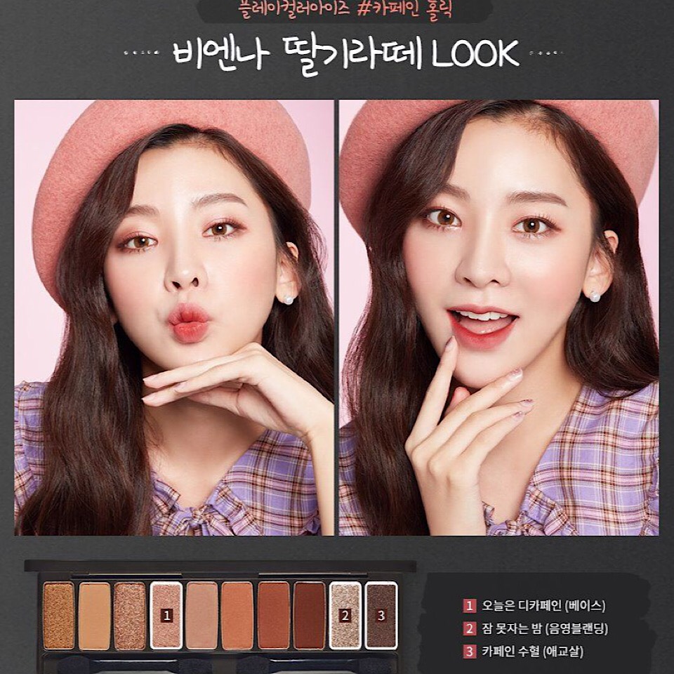 Em này bao gồm 10 ô màu với chủ đề "In The Cafe" được trang trí bởi hình ảnh những hạt cà phê trông vô cùng bắt mắt. Với tone chủ đạo là màu nâu cà phê, mỗi màu sắc trong bảng phấn sẽ tượng trưng cho một tách cà phê thơm ngon, đầy hấp dẫn. Các nàng nhà mình cùng tham khảo em ý nhé!
