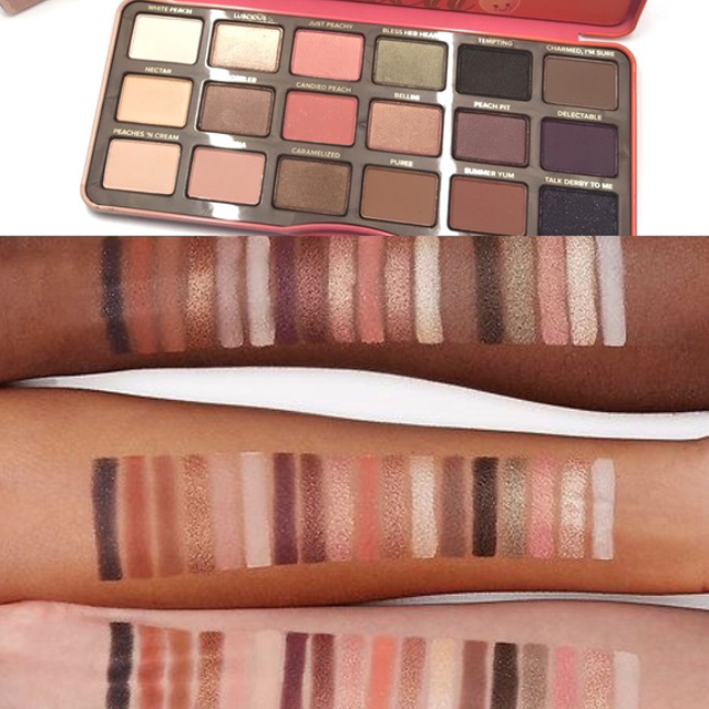 - Màu phấn của Too Faced Sweet Peach Eyeshadow Palette có kết cấu mượt mà, bao gồm cả phấn có độ lì (matte) và độ sáng (shimmer).